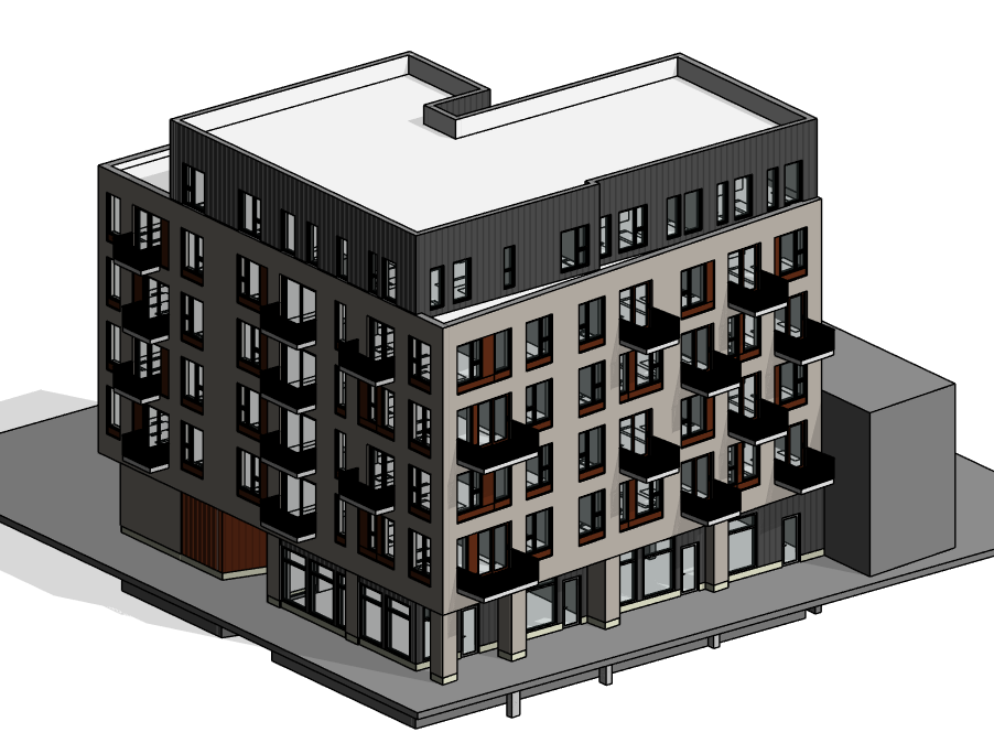This Revit MEP course uses a real mixed-use commercial + multi-family housing project called Franky by Quinzhee Architects.